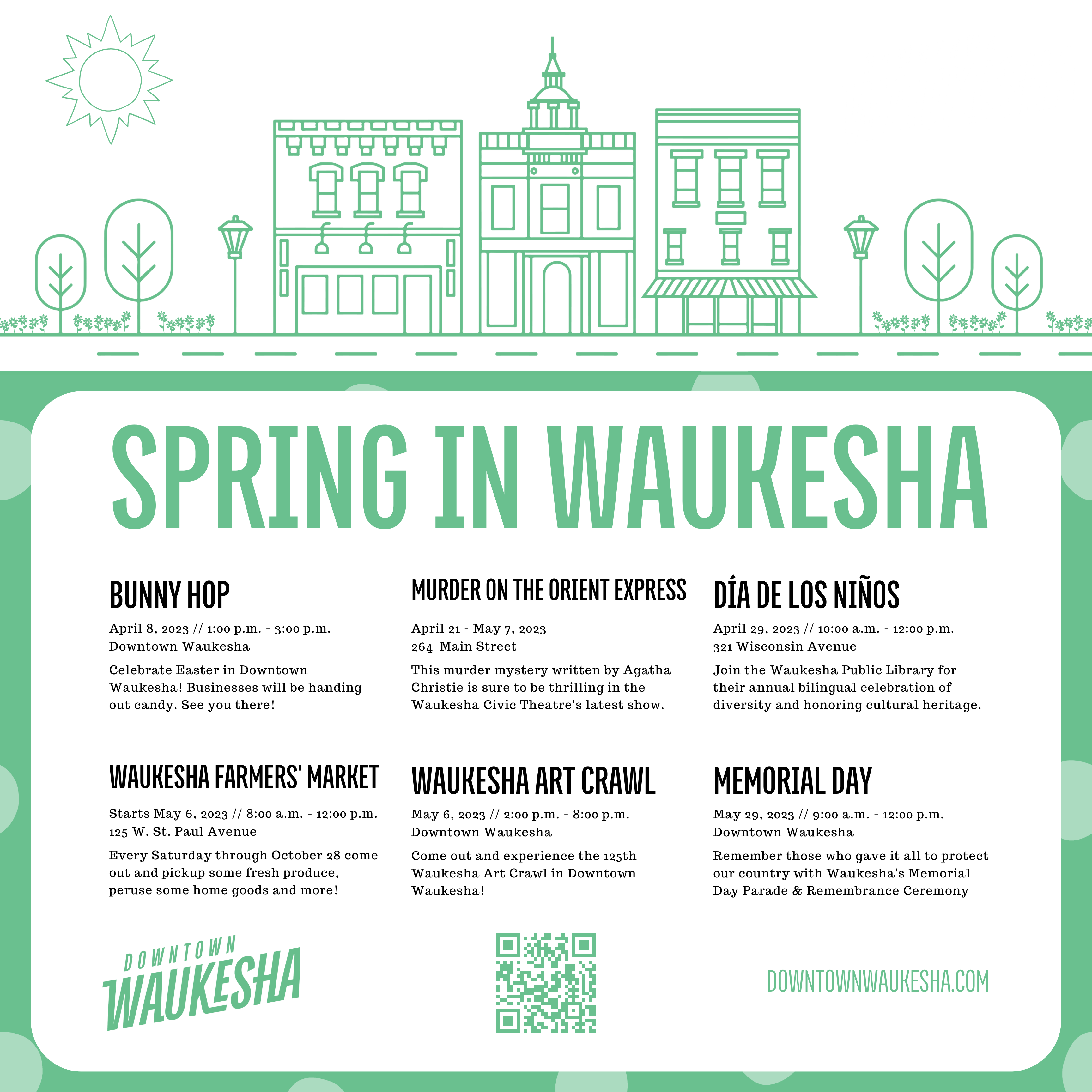 As the UI/UX Designer for the City of Waukesha, I am also the primary graphic designer for much of the print and digital designs. Included in the designs are a social media image for hiring using the City’s branding, a poster for Downtown Waukesha highlighting events coming in Spring, and a digital ad for the Independence Day festivities.